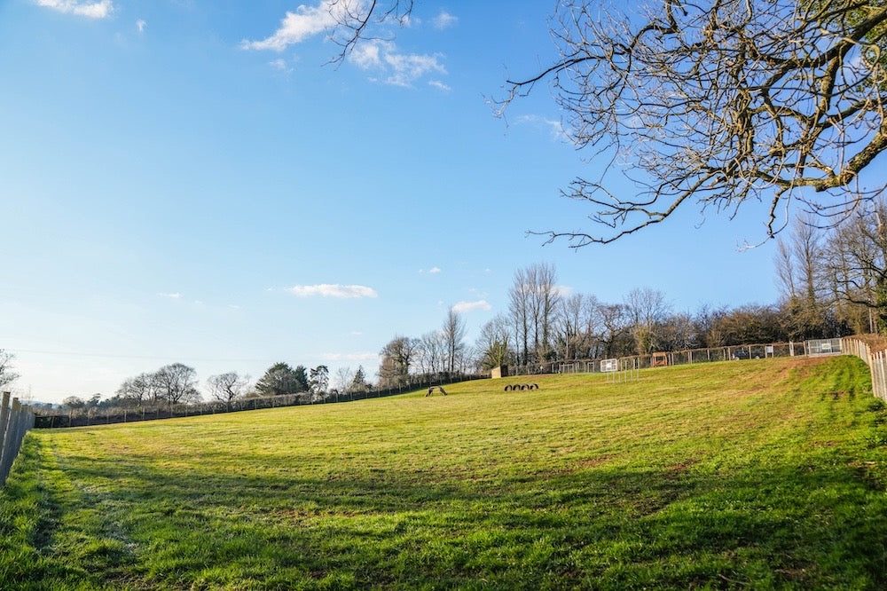 Our spacious field is completely fenced to ensure your dog can run, play, and explore safely. - Private Hire